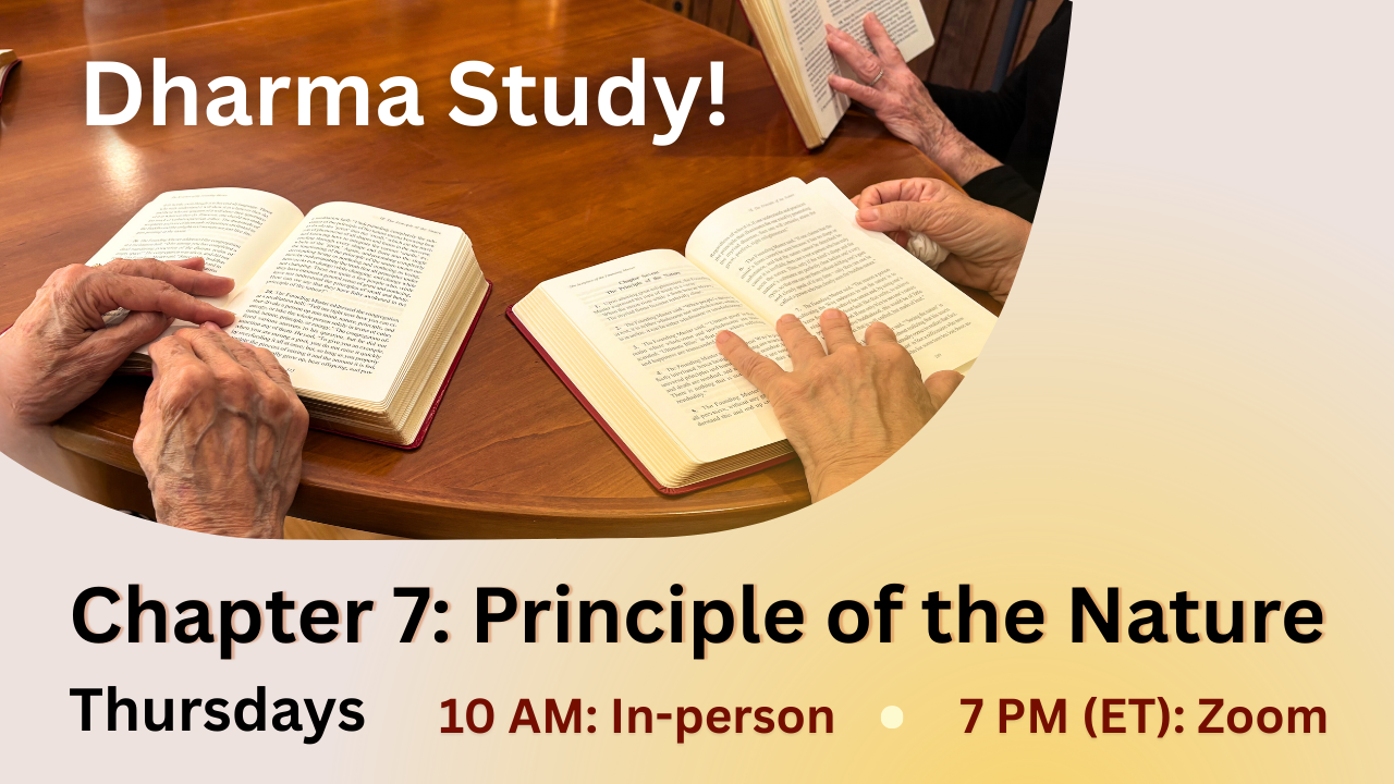 Beginning Thursday September 4, we will explore the chapter for Koan contemplation on our True Nature. Our scripture study will be on Chapter 7 – The Principle of the Nature.